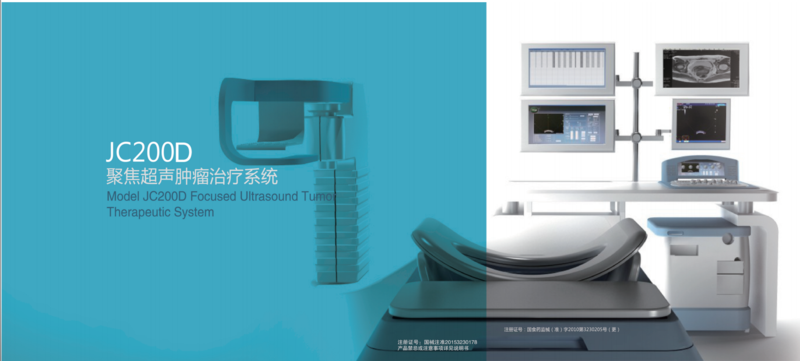 该设备利用超声波具有良好的组织穿透性和可聚焦性等物理特性,将体外发射的无数束低强度超声波聚焦于体内靶组织处,焦点声强得到数万倍放大,瞬间产生60-100℃高温,利用聚焦超声的热效应、空化效应、机械效应及声化学效应等,使靶组织产生不可逆的凝固性坏死。